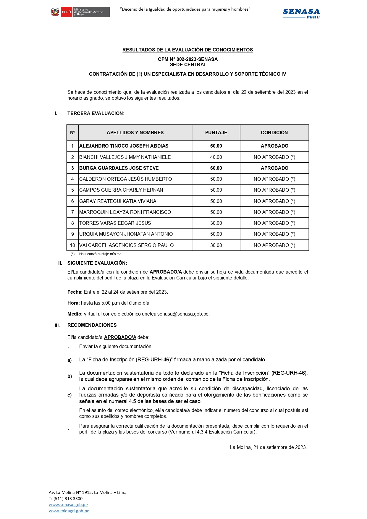 | 02-2023-SENASA (Sede Central) | Especialista en Desarrollo y Soporte Técnico IV | |