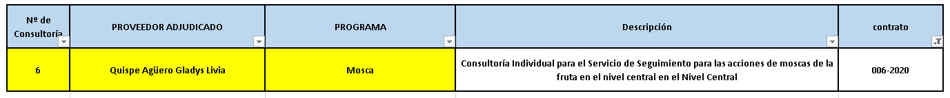 Consultoría Individual para el Servicio de Seguimiento para las acciones de moscas