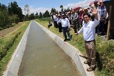 Luego en su discurso, el ministro adelantó el compromiso del Ministerio de sacar adelante la ansiada represa de Shullcas, que debido a problemas detectados en el diseño del proyecto realizado en el gobierno anterior, no se ha podido concretar la obra, pero recalcó que se trabaja en la actualización y corrección de los estudios para la reanudación de las labores en el corto plazo.