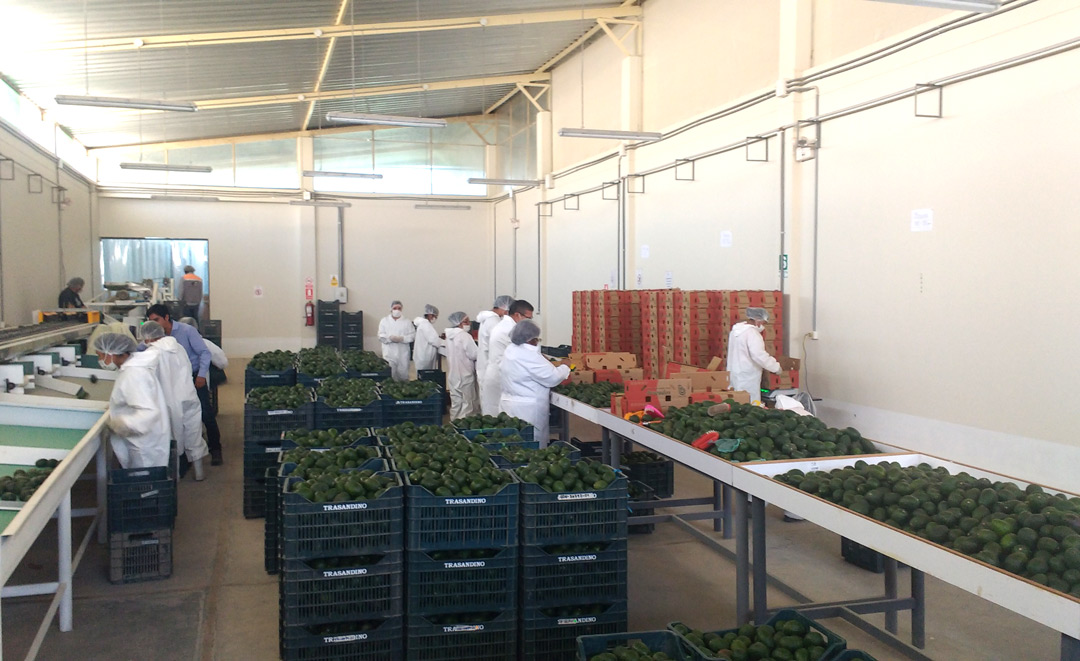 Luego, se inspecciona las paltas en la planta empacadora que también es autorizada por la autoridad agraria, donde el producto debe cumplir con los requisitos fitosanitarios de acuerdo a las normas de sanidad vegetal establecidas, como que el producto se encuentre dentro de envases de cartón nuevos, libre de polvo, tierra y plagas cuarentenarias; y cumplir las normas fitosanitarias del país importador.