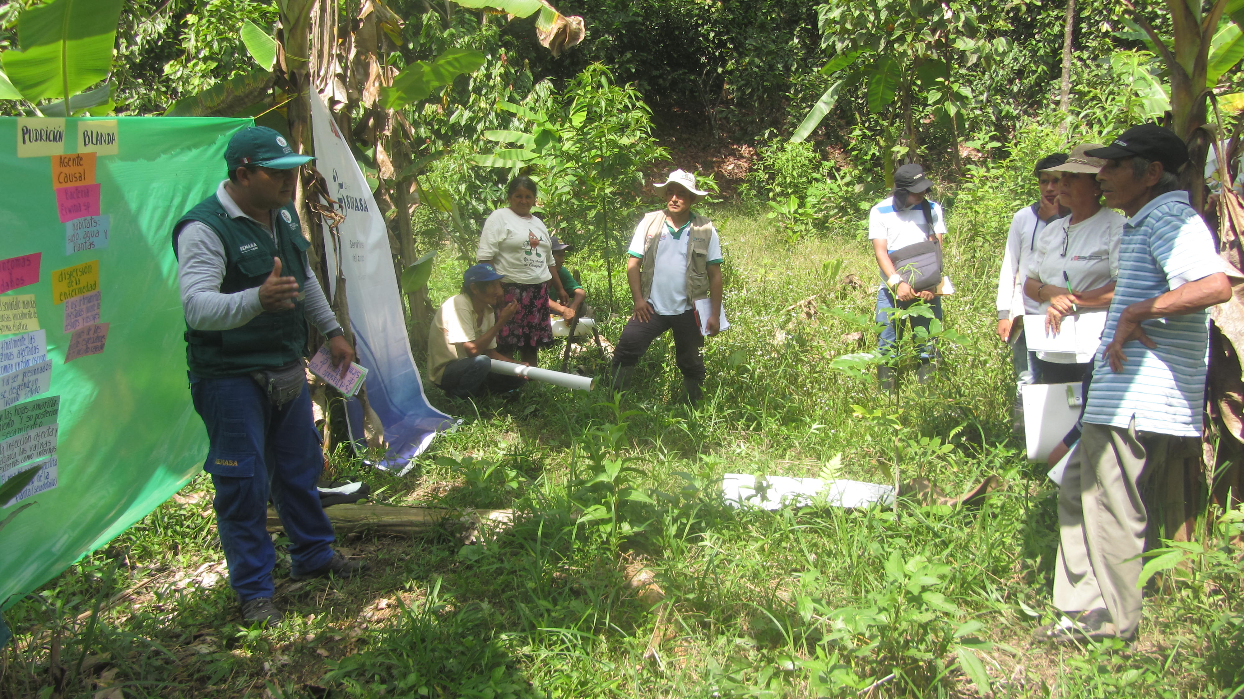 A través de la metodología de Escuelas de Campo (ECA´s), un proceso de aprendizaje mediante el diálogo, observación, análisis e intercambio de experiencias; Servidores del campo instruyeron a como reconocer y enfrentar las enfermedades que afectan las plantaciones de plátano en la región Ucayali.